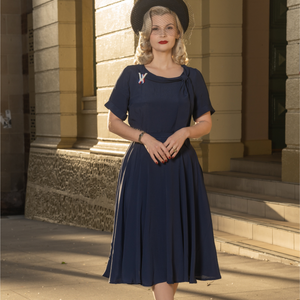 Taking inspiration from the timeless designs of the 1930s and 1940s, this dress is a beautifully crafted reproduction that exudes sophistication and has been modernised for contemporary wear.