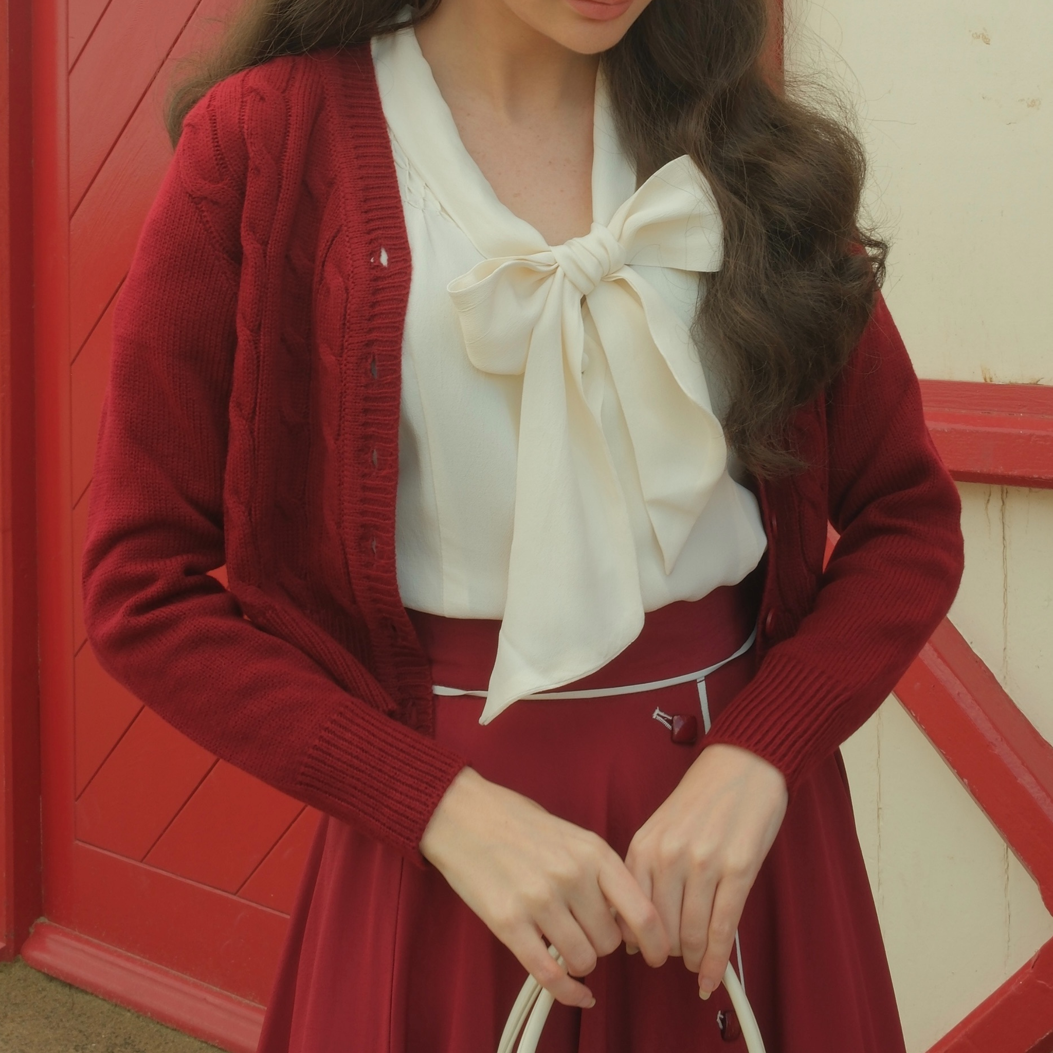 Our beautiful Cable Knit Cardigans with a classic 40s fit. Knitted in replica 'Orlon' which was developed originally by Du Pont in 1941 as a substitute for wool and is naturally free of any animal products.