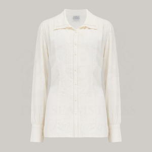 Crafted with utmost attention to detail and inspired by the timeless sophistication of the 1940s, this long-sleeved blouse is a stunning replica of a vintage piece from our esteemed collection. Carefully crafted with our luxurious Rayon Crepe de Chine fabric, it exudes authenticity and elegance.