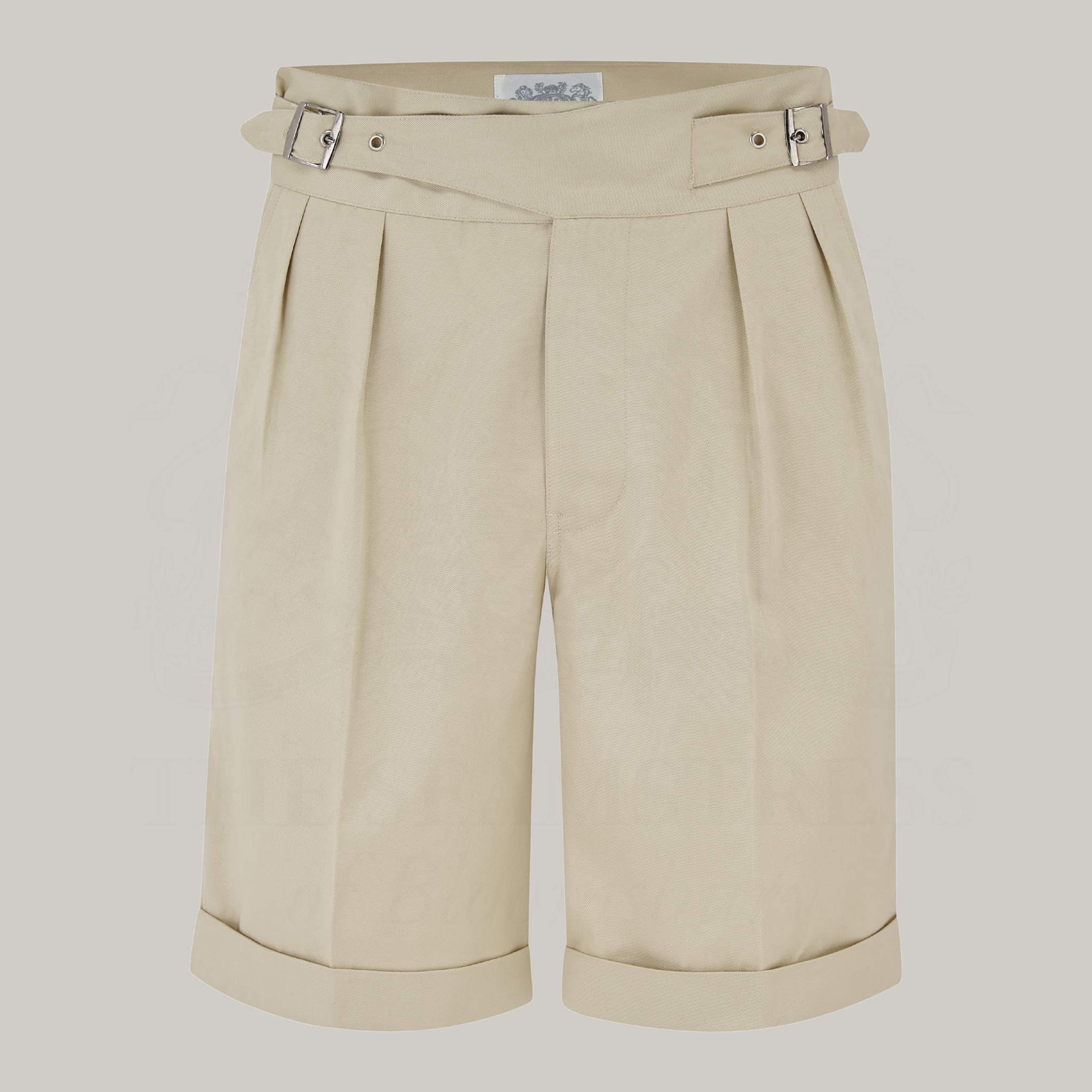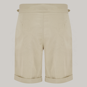 Our Gurkha Shorts stay true to the classic details that made this style so distinctive. Cut with a high waist and deep front pleats, they create a clean, flattering shape through the leg while maintaining the sharp proportions typical of the era. Turn-ups add structure to the silhouette, while the adjustable side buckle waistband allows for a versatile fit without the need for a belt.