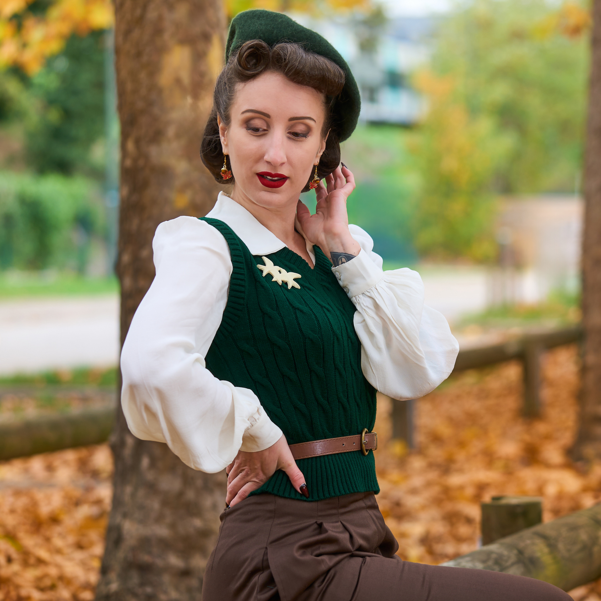Indulge in the glamour of old Hollywood with our exquisite slipover crafted in luxurious 'Orlon' - a modern adaptation of Du Pont's 1941 invention as a wool alternative, making it completely vegan-friendly.