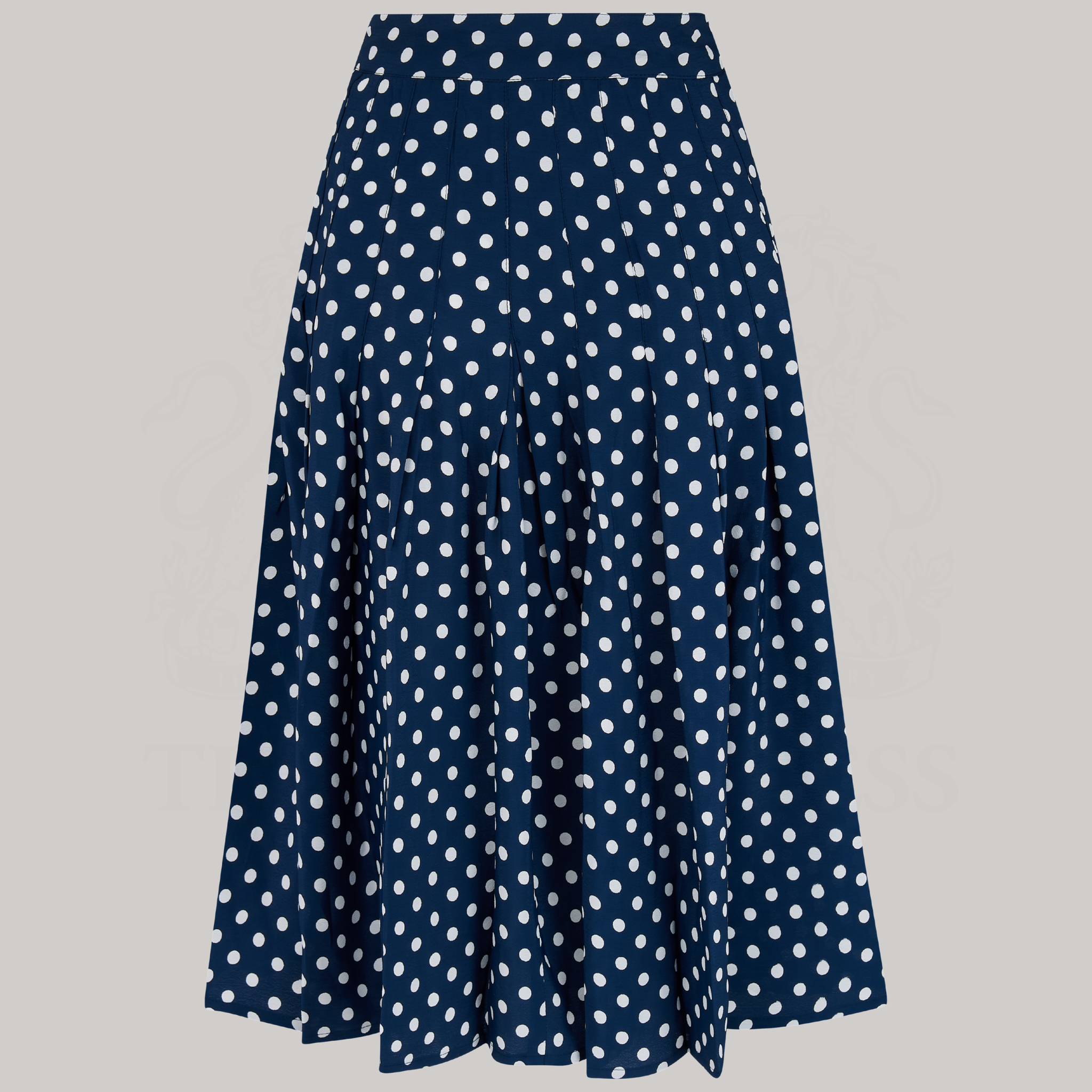 A fabulous vintage design, this skirt features meticulously pin-stitched inverted pleats, an invisible side zip and a large bakelite-style button on the waist.