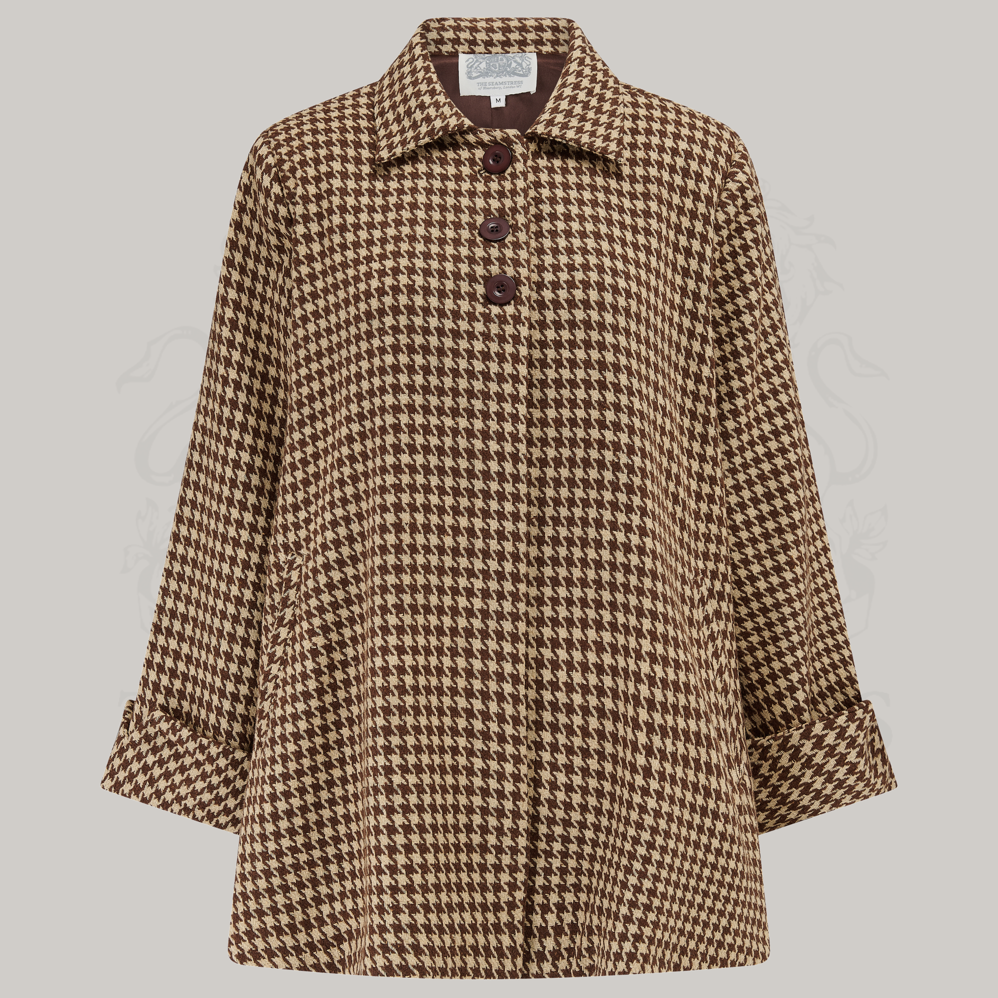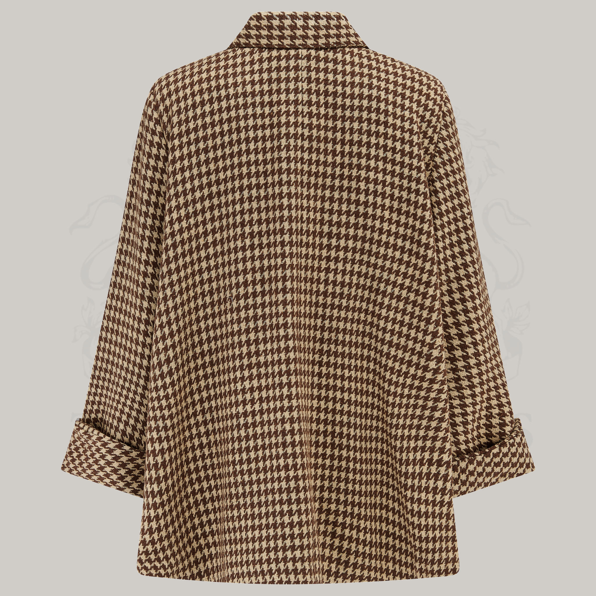 Indulge in vintage elegance with our Swing Jacket, a recreation of an original 1940s treasure in our archive. With big turn-back cuffs, shoulder pads, and 3 big buttons at the top front.