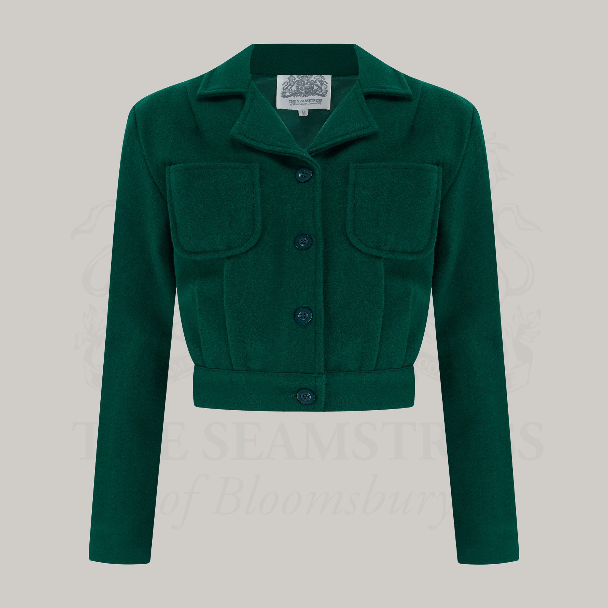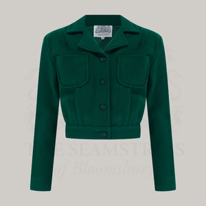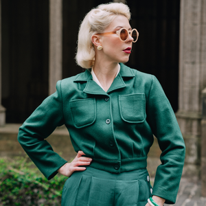 Inspired by authentic 1940s utility styles, this women's jacket blends practicality with elegance. Tailored for a flattering, structured fit, it features clean lines, long sleeves, functional front patch pockets, and durable craftsmanship inspired by wartime design.